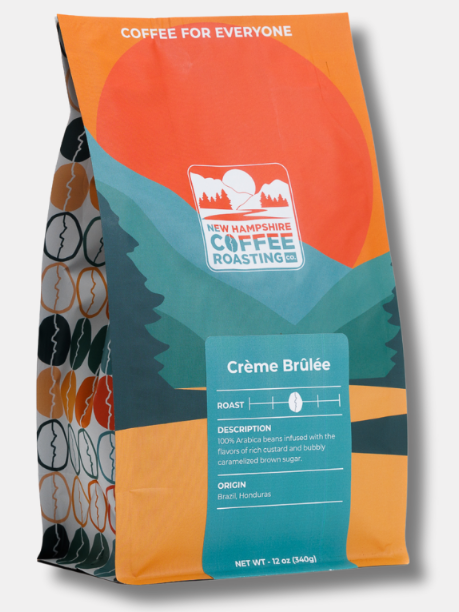 Medium roasted 100% Arabica beans flavored in small batches. Roasted in Dover, NH.